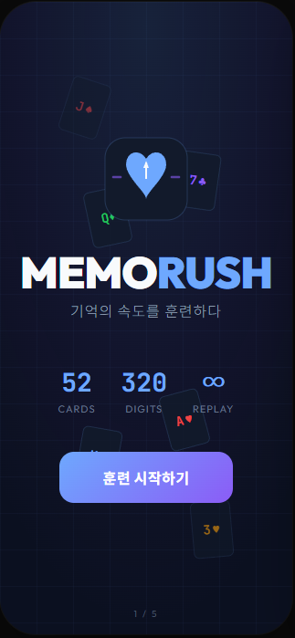 MemoSprint는 스피드 카드와 스피드 넘버를 중심으로 기억술을 훈련하고, 매일의 기록과 성장 곡선을 확인할 수 있는 메모리 스포츠 훈련 앱입니다.
